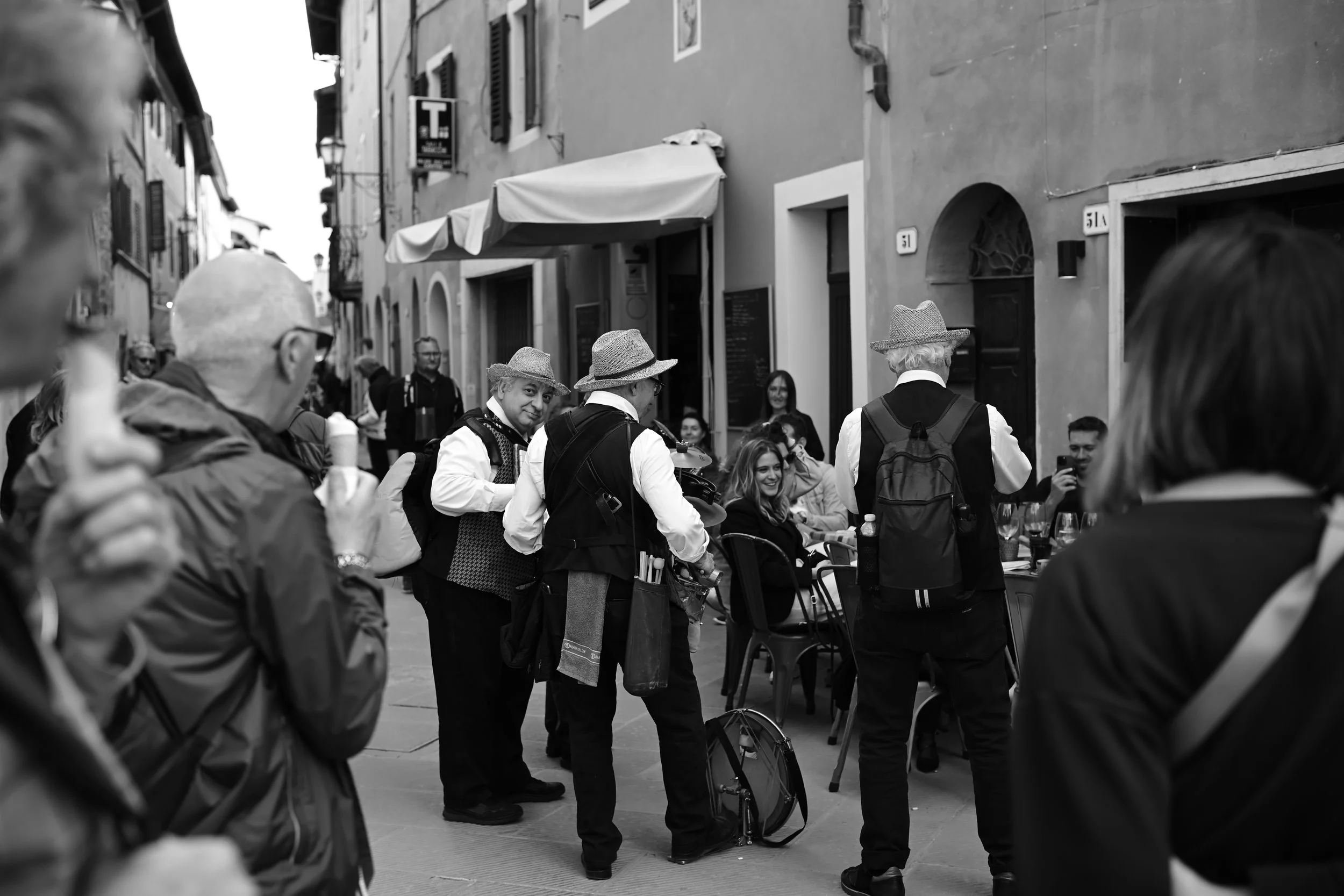 In Florence, life moves to the rhythm of food, music, and conversation — markets buzzing, musicians playing, kitchens alive with tradition. Just beyond, the Val d’Orcia stretches out in quiet elegance, where rolling hills, lone cypress trees, and golden light create a different kind of story. These photographs trace both energies — the pulse of the city and the stillness of the land — moments observed, not staged, told through a reportage lens.